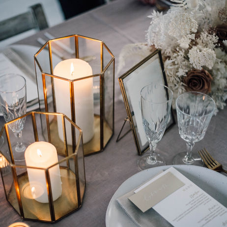 Large gold and glass lanterns for use with pillar candles (please note, candles are not provided)